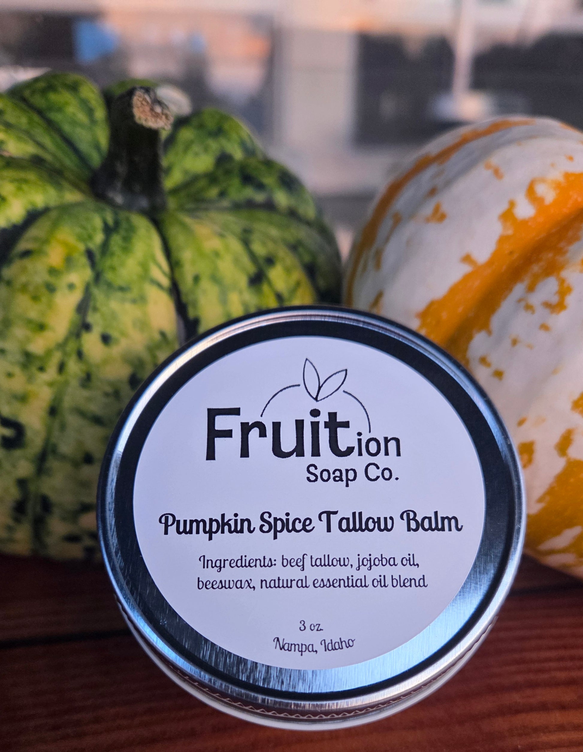 Delightfully simple and deeply nourishing, our tallow balm is handcrafted in small batches using a minimal list of thoughtfully chosen ingredients. Now available with our Pumpkin Spice essential oil blend, this version offers the same pure, gentle care designed for sensitive skin—infused with the warm, cozy aroma of fall.