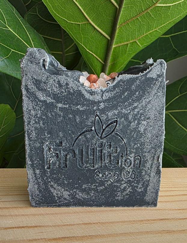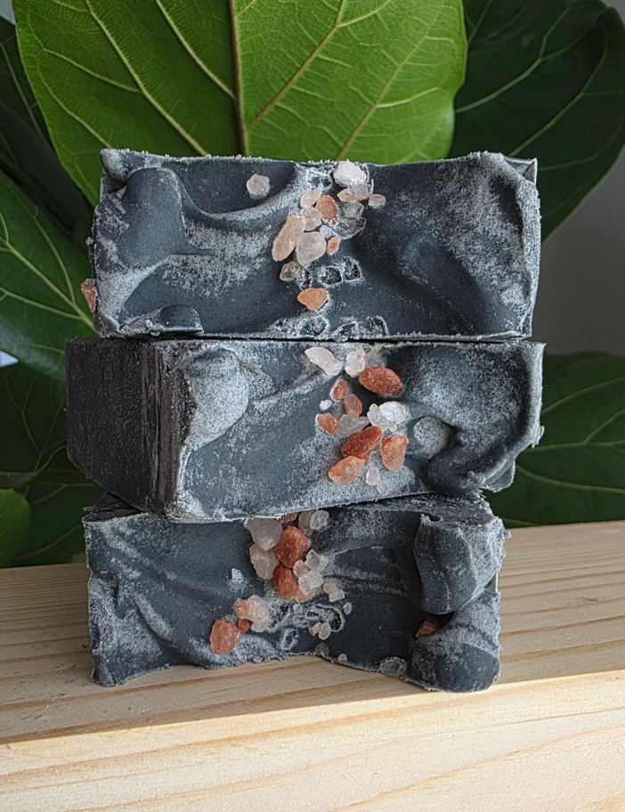 Ingredients: beef tallow, distilled water, castor oil, coconut oil, extra virgin olive oil, sodium hydroxide (lye), Frankincense essential oil, pureed aronia berries, charcoal powder, Himalayan salt
